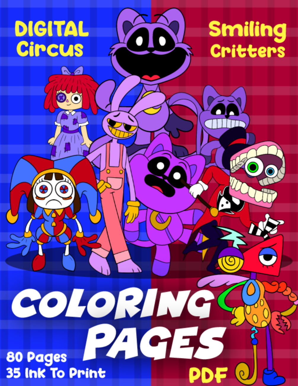 The Amazing digital circus, Pomni, Jax,Smiling Critters Coloring Book PDF for Birthday Celebration Printable for Birthday Gift to Enjoy with Kids, Ink Coloring pages, Gift, Gift for her